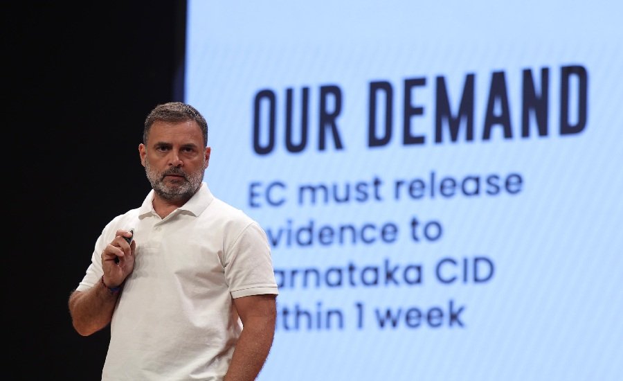 The Congress leader was addressing a press conference at Indira Bhawan, the AICC headquarters here, just a day after Prime Minister Narendra Modi celebrated his 75th birth day on Wednesday with much fanfare. Gandhi made a detailed presentation and also presented some persons whose identity was used for deleting the voters’ names without their knowledge. He disclosed that it was a “targeted deletion” of voters mainly in ten Congress booths in Aland constituency of Karnataka, out of which the party had won on eight booths in 2018 assembly elections. Besides, he disclosed that the names of voters belonging to those communities which are traditionally opposed to the BJP like the Dalits, the Adivasis, the minorities and the OBCs, were deleted in this targeted deletion process.