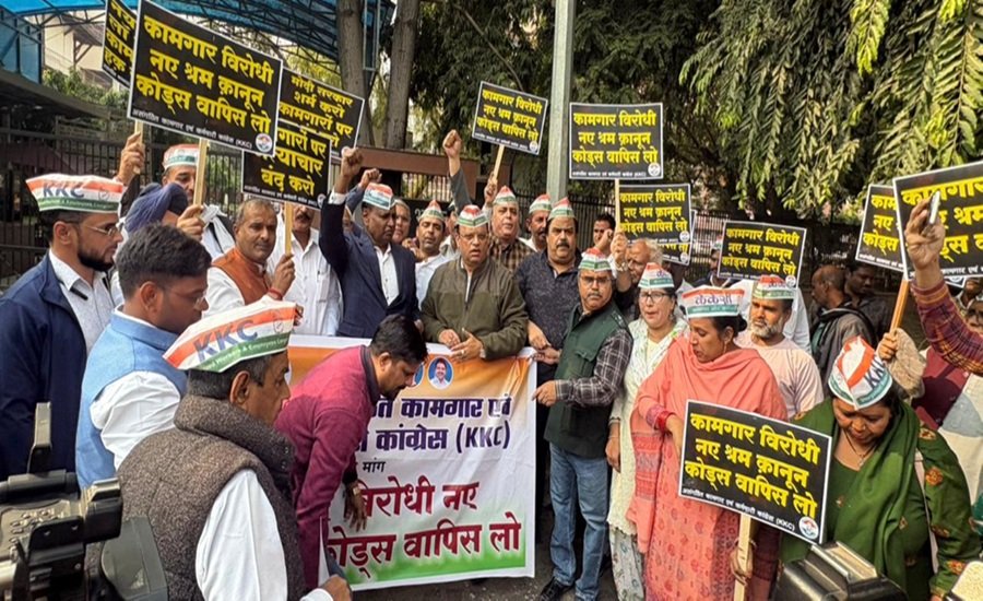 NEW DELHI — The workers wing of Congress, the main opposition party in the country, on Saturday staged a massive protest outside Shram Shakti Bhawan in the national capital, opposing the implementation of the Centre’s new Labour Codes.