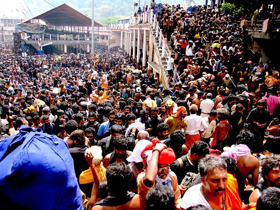 Pilgrims carrying irumudi, or offerings to Lord Ayyappa, at Kerala’s temple in Sabarimala in 2010. (Avsnarayan / Wikimedia Commons /CC0)
