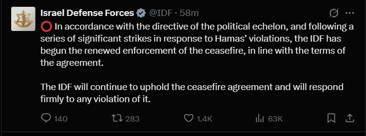 As some sort of grotesque joke that only Jewish supremacists cheering on this genocide for the past two years would find funny, the announcement added, “The IDF will continue to uphold the ceasefire agreement.” The sheer audacity!