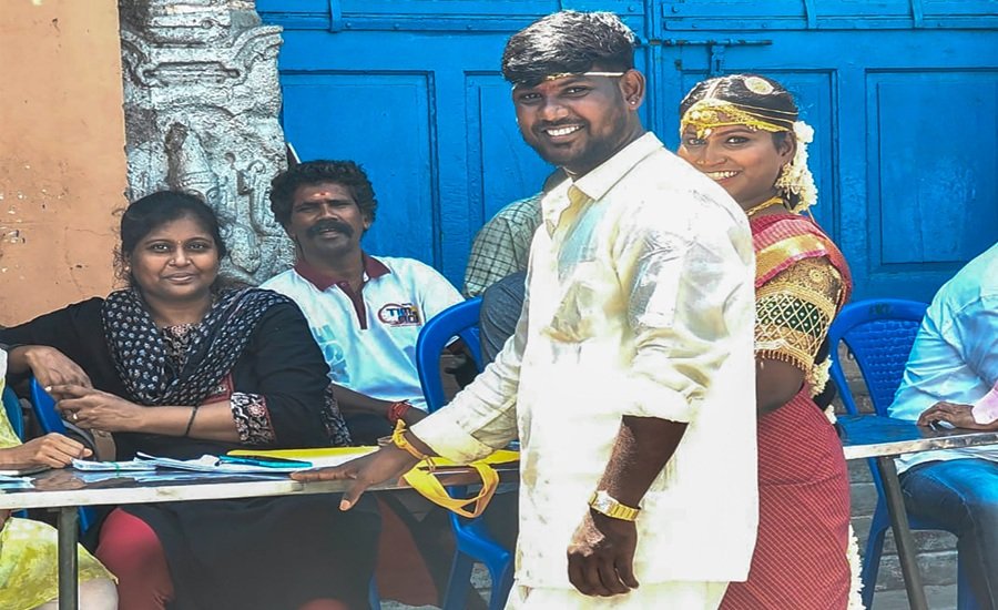 A newly married couple steps out together to cast their vote during the Tamil Nadu Assembly elections 2026, in Chennai district of Tamil Nadu on Thursday. — IANS/X/@ECISVEEP