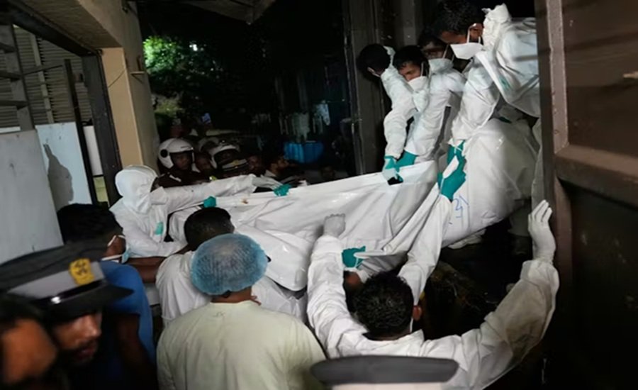Workers unload bodies of Iranian sailors who died when the IRIS Dena warship sank outside Sri Lanka’s territorial waters. — AP Photo/Eranga Jayawardena