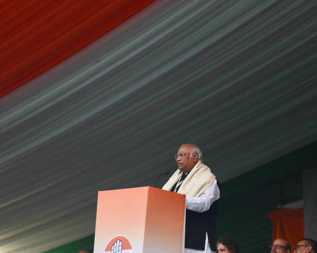 Addressing the rally, Congress president Mallikarjun Kharge asserted that India would be governed by the Constitution, not by the ideology of the RSS or Manusmriti. “This country will not be run by the BJP-RSS ideology. It will be run by the Constitution,” he said, accusing the BJP and RSS of seeking to take the nation back to the era of Manu and pushing the poor and marginalised into subjugation.